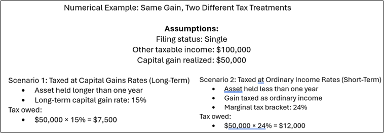 However, not all gains qualify for that favorable treatment. Capital gains can be taxed at ordinary income tax rates in certain situations—most commonly when an asset is held for one year or less (short-term gains). Ordinary income treatment can also apply to gains from specific assets or activities, including depreciation recapture on real estate, collectibles such as art, coins, or precious metals, and certain business or active trading activities.